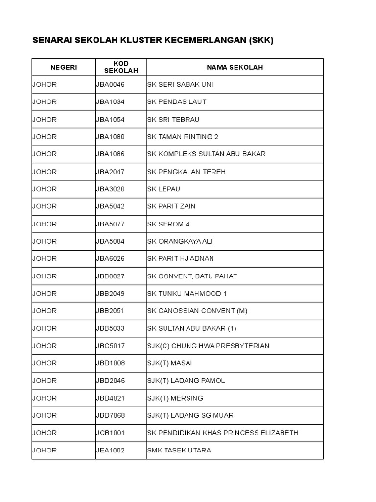 9 Senarai Sekolah Kluster Kecemerlangan Skk Pdf
